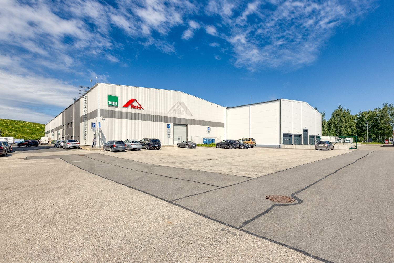 Jaunā noliktavas piebūve paredzēta kontrolētai preču uzkraušanai, nodrošinot slēgtu vidi ar piecām mikroautobusu stāvvietām un atsevišķiem paceļamiem vārtiem katram transportlīdzeklim. Šis tehniskais risinājums ļauj būtiski paātrināt uzkraušanas procesus, samazinot laika zudumus un nodrošinot ērtu, drošu un efektīvu loģistiku. Piebūvē integrēta pielāgota specifiska dūmu un gāzu novadīšanas sistēma. Projekts īstenots sadarbībā ar ilggadējo nomnieku “Magnum Medical”.