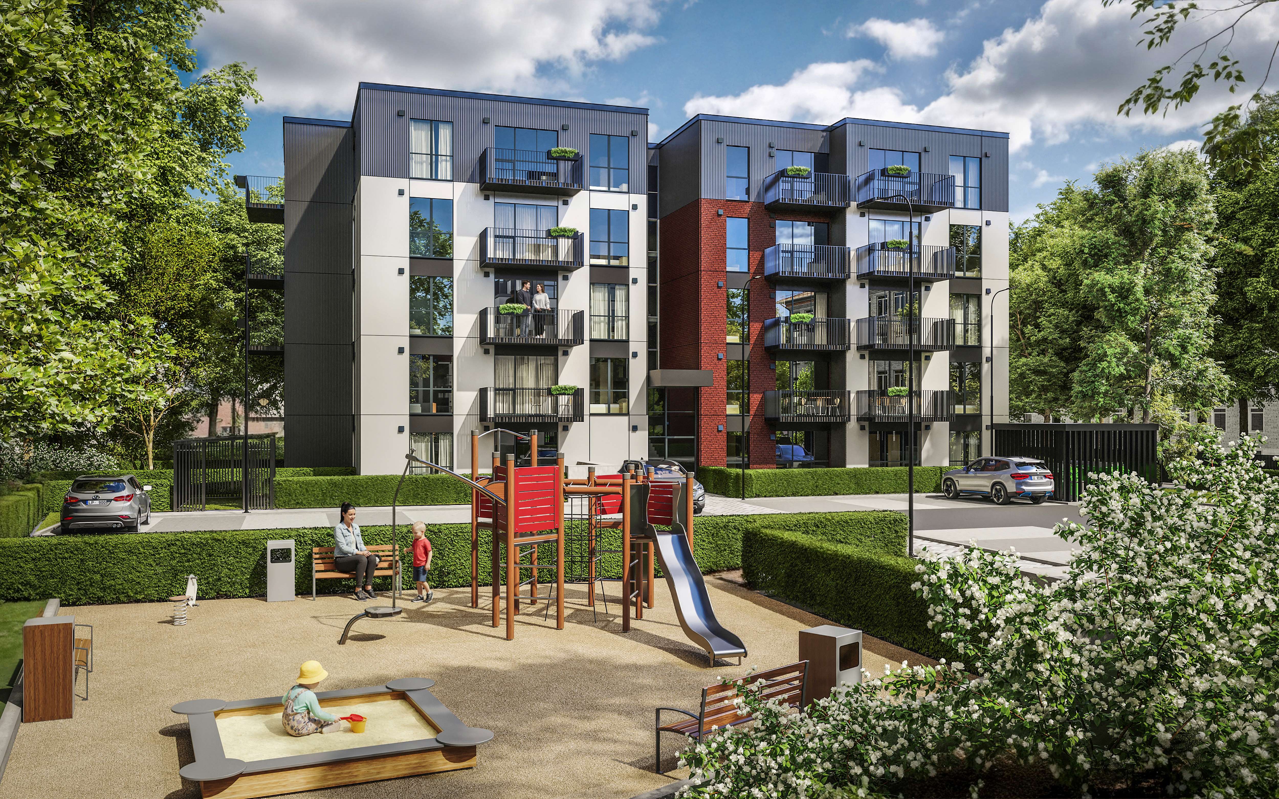 Projekta ietvaros tiks uzceltas divas dzīvojamās ēkas ar 75 dzīvokļiem, kas tiks piedāvāti ar pilnu apdari, interjera dizaina autore – Eva Staņeviča. Būs iespēja iegādāties studio tipa, divu, trīs un četru istabu dzīvokļus. Ēku pirmajos stāvos paredzēti dzīvokļi ar privāto zaļo zonu, savukārt, augšējos stāvos – ekskluzīvi dzīvokļi ar plašām terasēm.