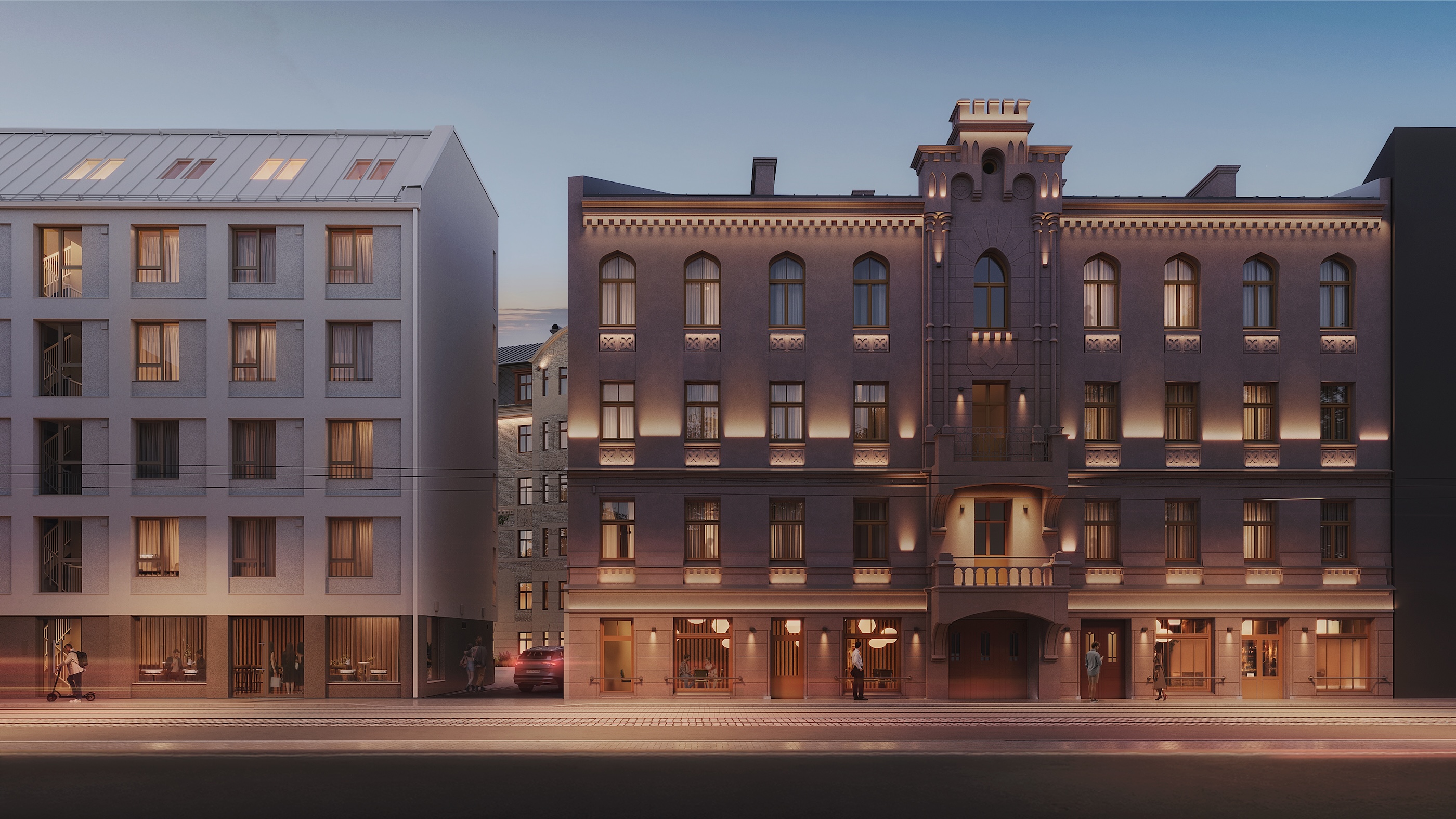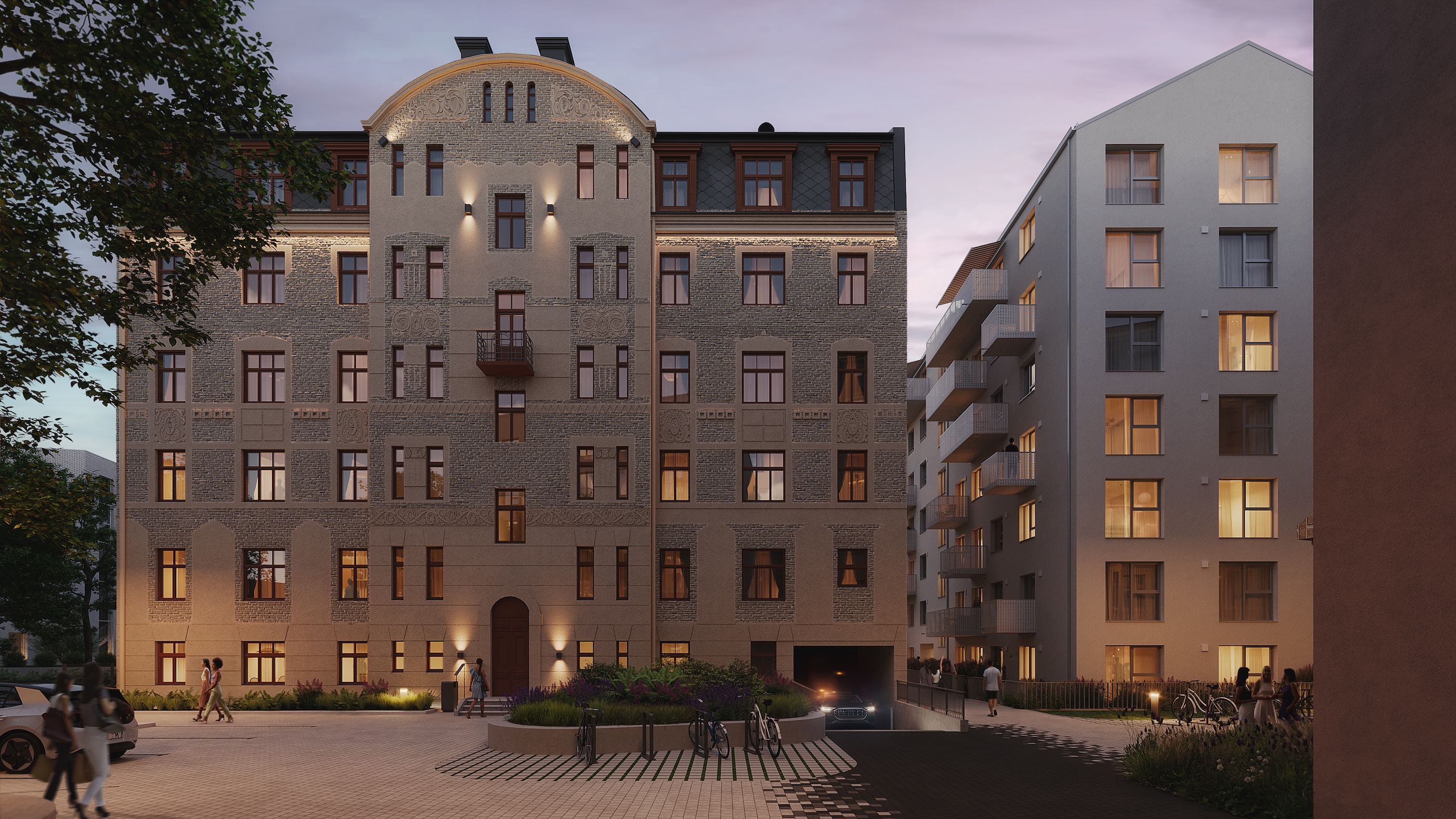Praksē vēsturiskā elegance atdzīvojas caur materiāliem, proporcijām un krāsām. Dzīvokļu apdarē tiek izmantoti dabīgie materiāli – kvalitatīvi koka logi, koka grīdas un niansēta, neitrāla apdares palete, kas rada harmonisku un mierīgu vidi. Plašuma sajūtu, kas raksturīga vēsturiskām telpām, pastiprina augsti griesti un augstas ieejas durvis, liekot telpai “atvērties”. Īpašu raksturu piedāvā arī mansarda dzīvokļi ar jumta logiem un slīpajiem griestiem – risinājums, kas jaunajos projektos vēl nav tik izplatīts.