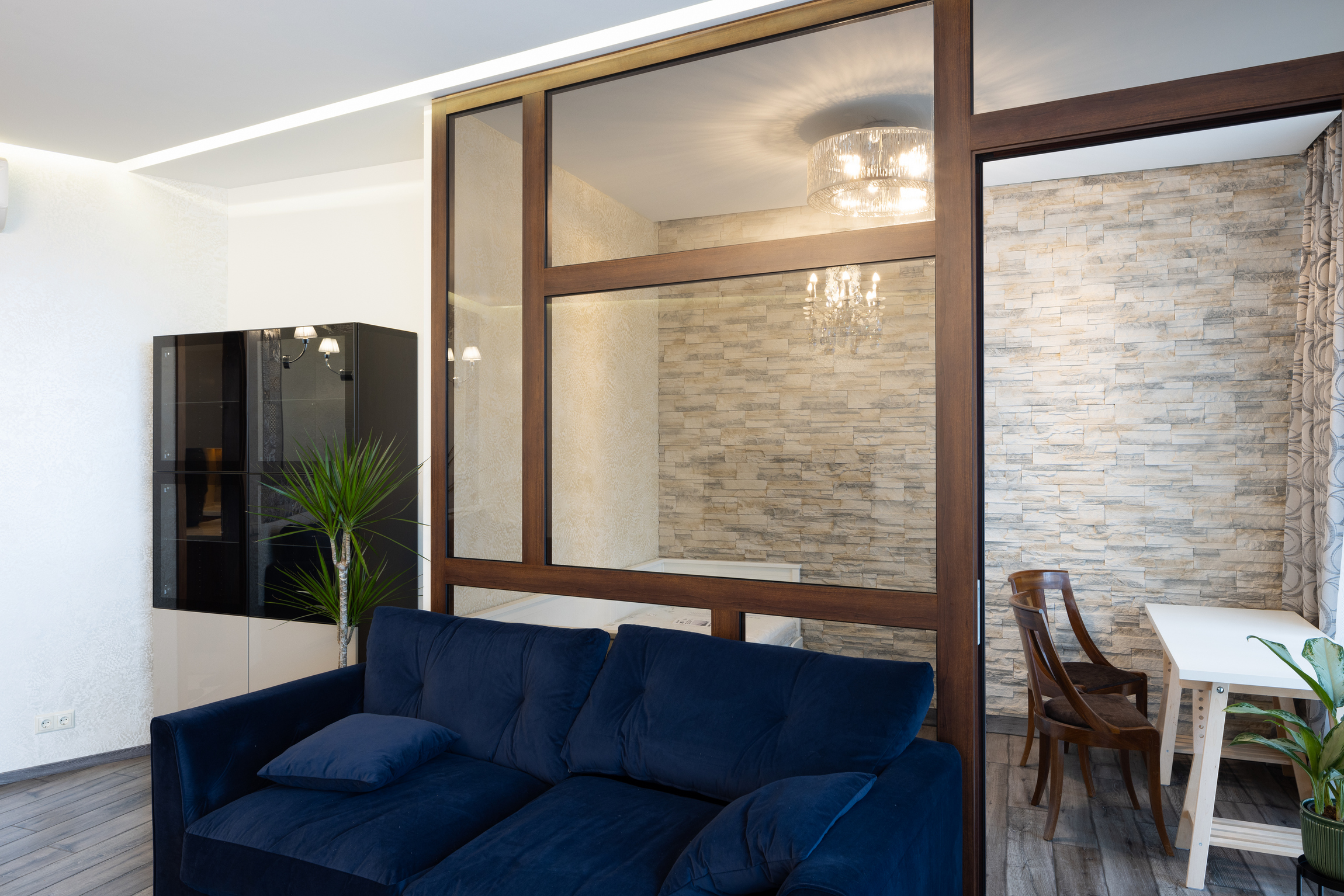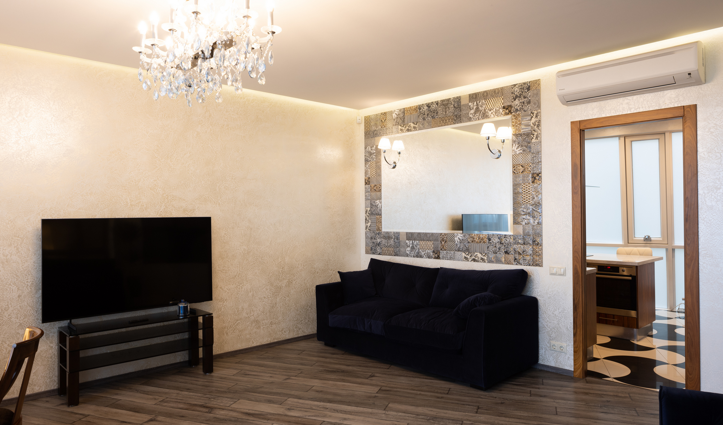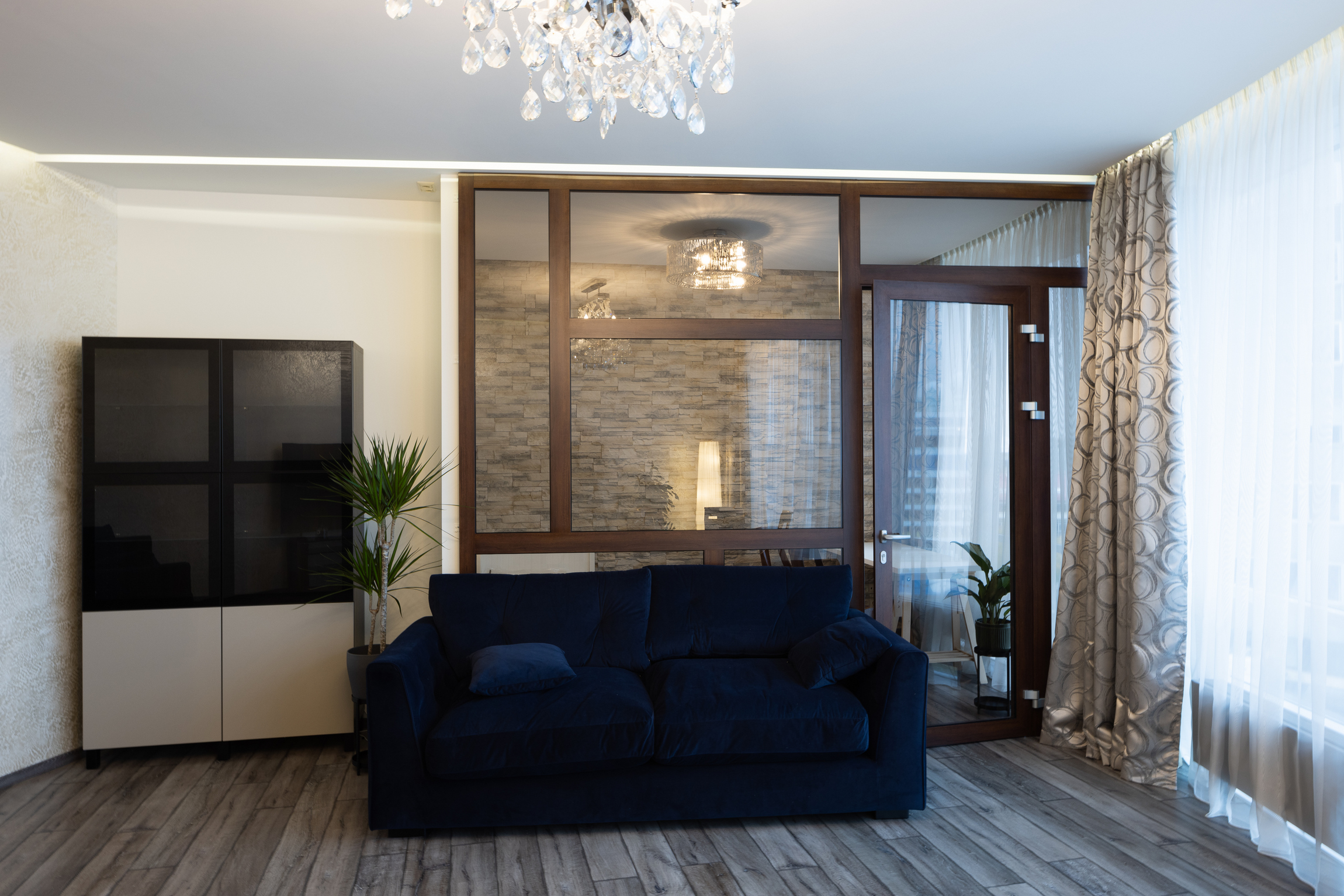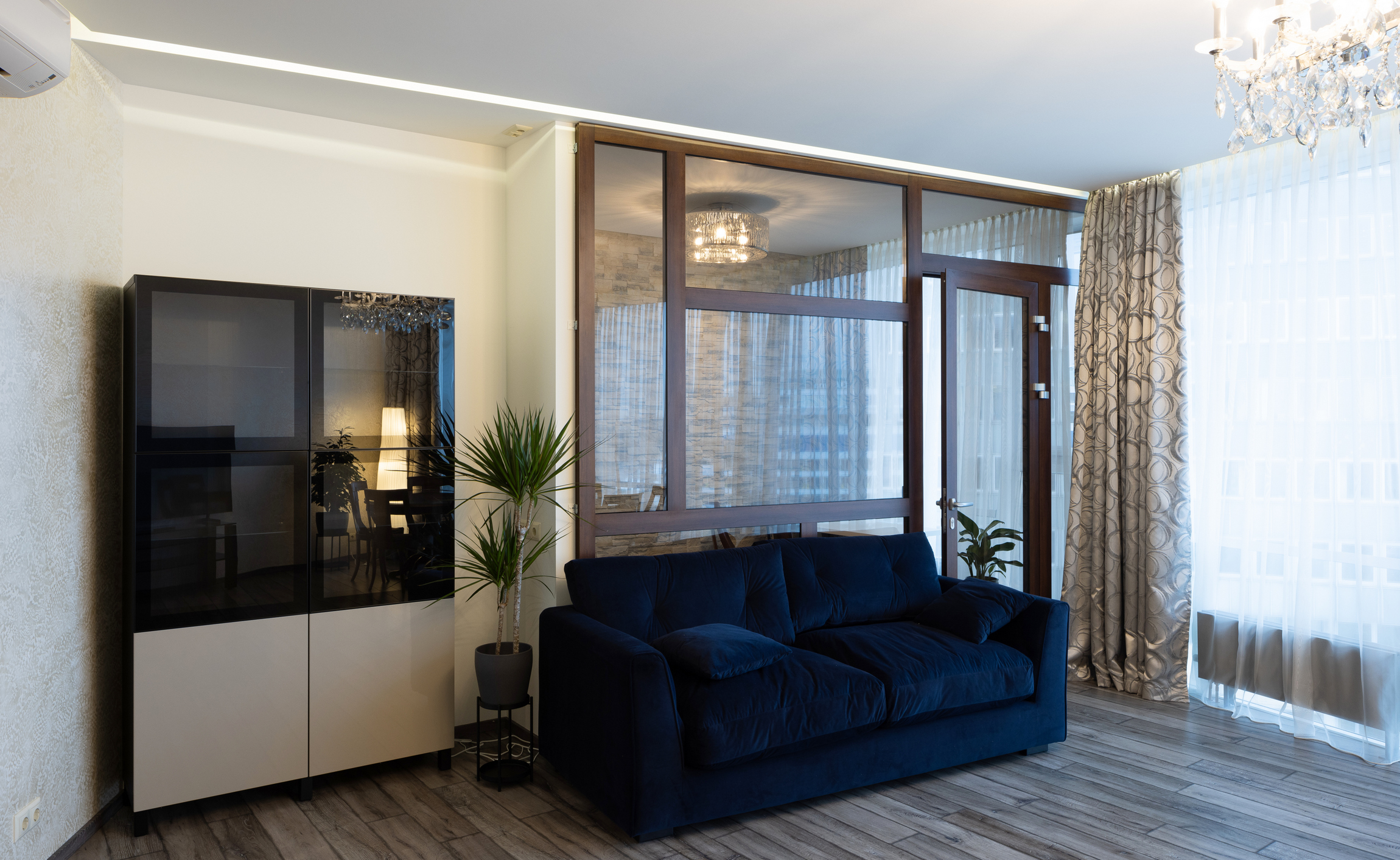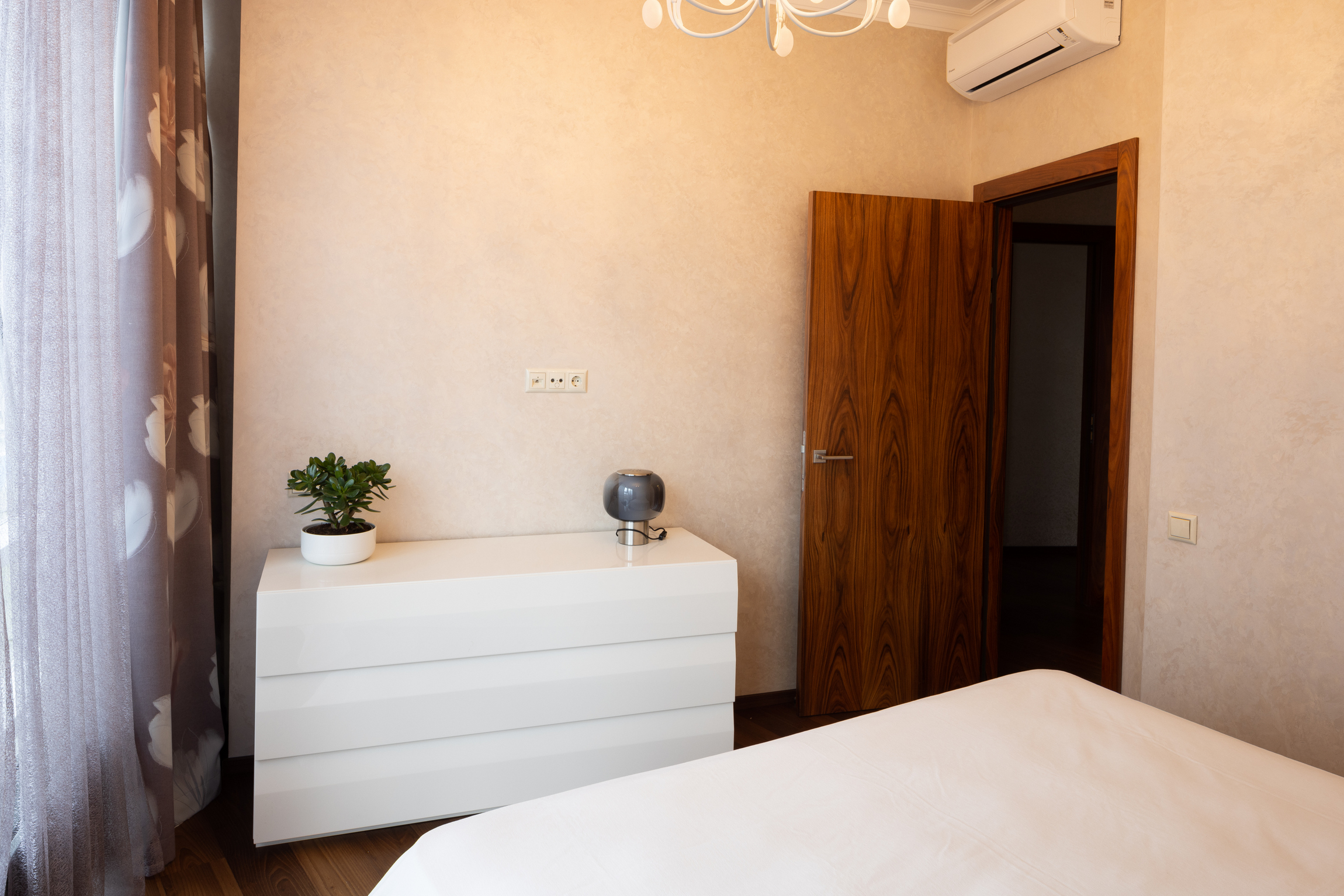 ĪRE! No 04.2026. Tiem, kas nekustamajā īpašumā novērtē lieliskus skatus un meklē klusu vidi dzīvošanai! Rīgas centrā, Centra Nama kompleksa fasādes daļas septītajā stāvā tiek piedāvāts īrēt 116,2 kv. m lielu dzīvokli ar skatu. Dzīvoklī ir dzīvojamā istaba (30,6 kv. m), stiklots kabinets (8,3 kv. m, var izmantot kā vēl vienu guļamistabu), divas guļamistabas (pieaugušo un bērnu, 11,5 un 14,8 kv. m), virtuves zona, garderobe (2,9 kv. m), trīs vannas istabas (6,1, 3,1 un 1,8 kv. m), noliktavas telpas (2,5 un 1,3 kv. m) un veļas mazgātava (1,3 kv. m). Absolūti visas dzīvoklī esošās komunikācijas ir jaunas, ierīkotas 2015. gadā. Apdarei izmantoti tikai kvalitatīvi materiāli. Visās istabās, kas vērstas uz fasādes daļu, ir uzstādīti gaisa kondicionieri. Mūsdienīgi apkures radiatori nodrošina komfortablu temperatūru dzīvoklī aukstajā sezonā. Dzīvoklis ir daļēji mēbelēts. Guļamistaba ir pilnībā aprīkota. Viesistaba ir jauni dīvāni. Iebūvētā virtuve ir aprīkota ar visu nepieciešamo sadzīves tehniku, ir veļas mašīna. Papildu bonuss dzīvoklim ir slēdzams koridors (16,7 kv. m), kas ved no kāpņu telpas un ko var izmantot, piemēram, velosipēdu glabāšanai.