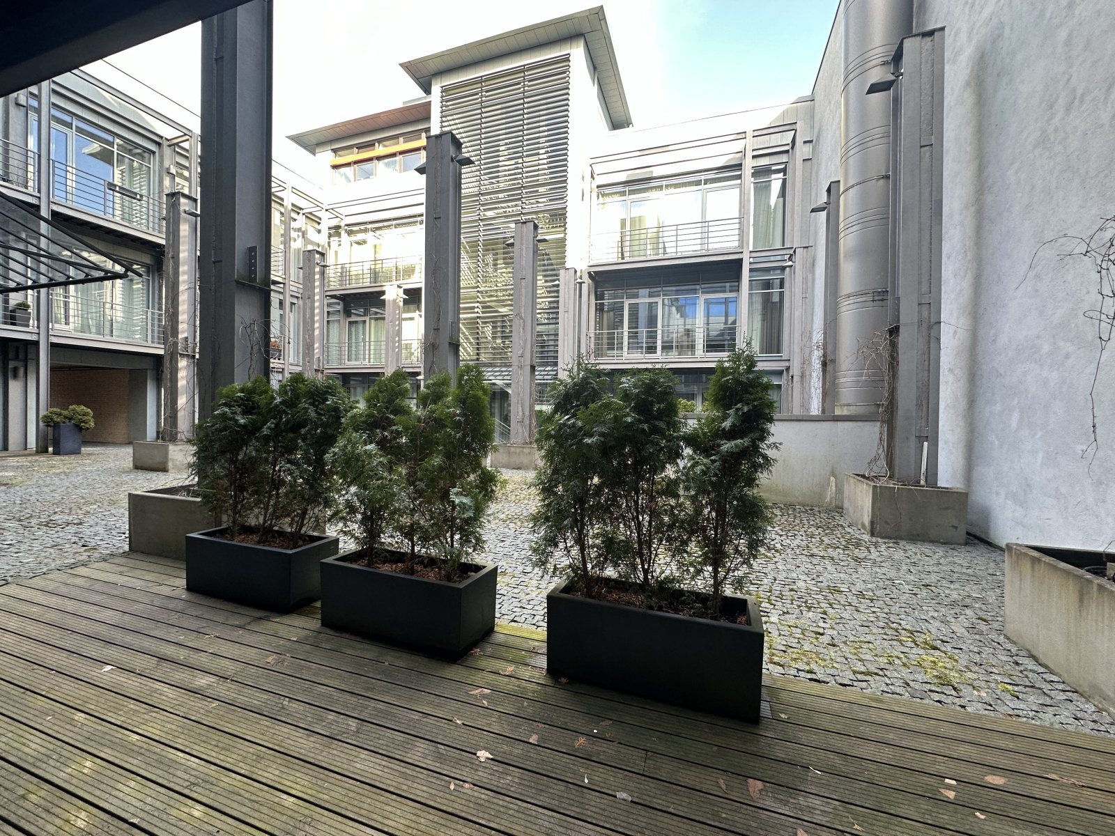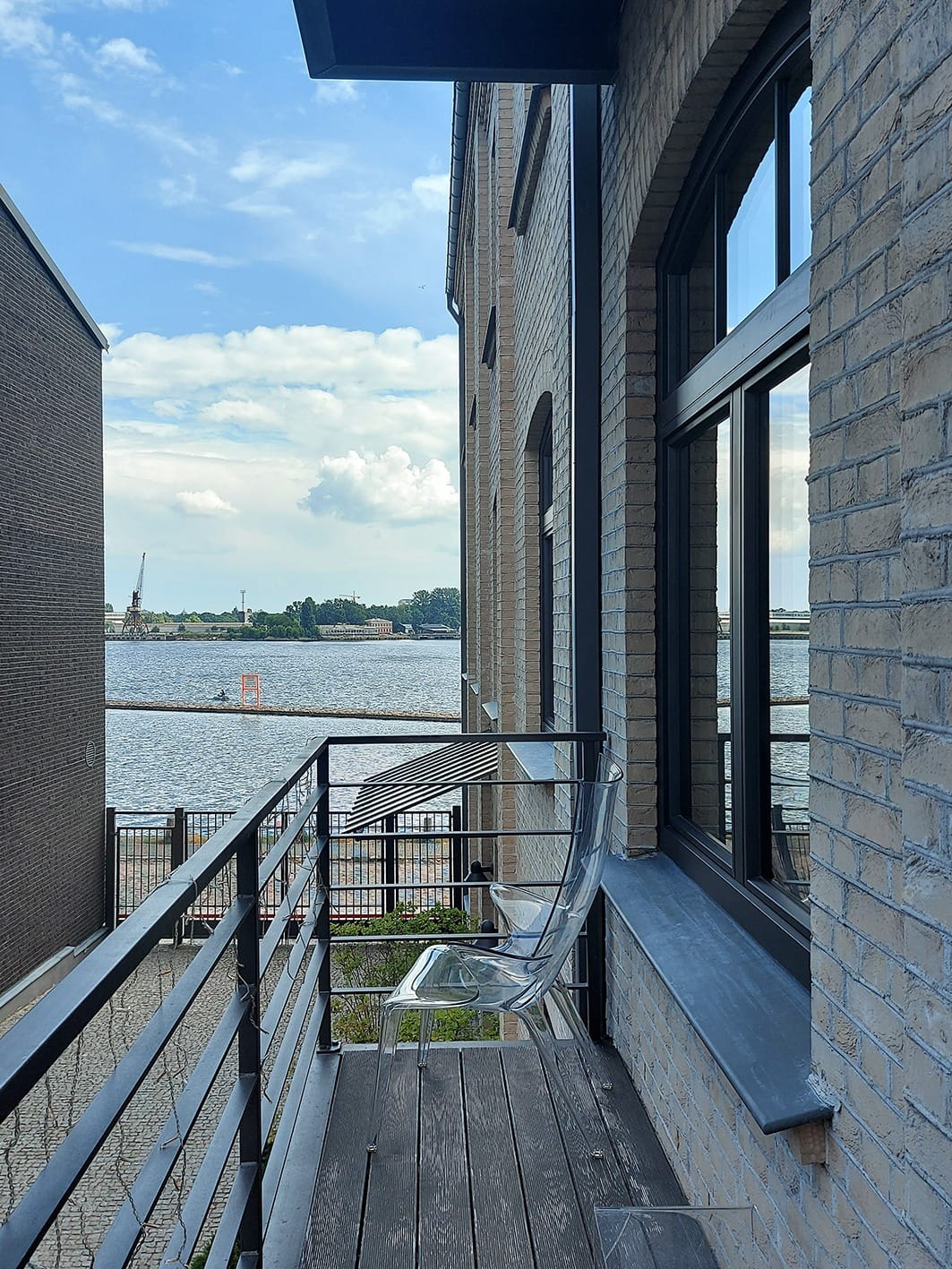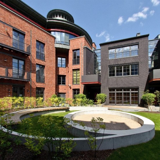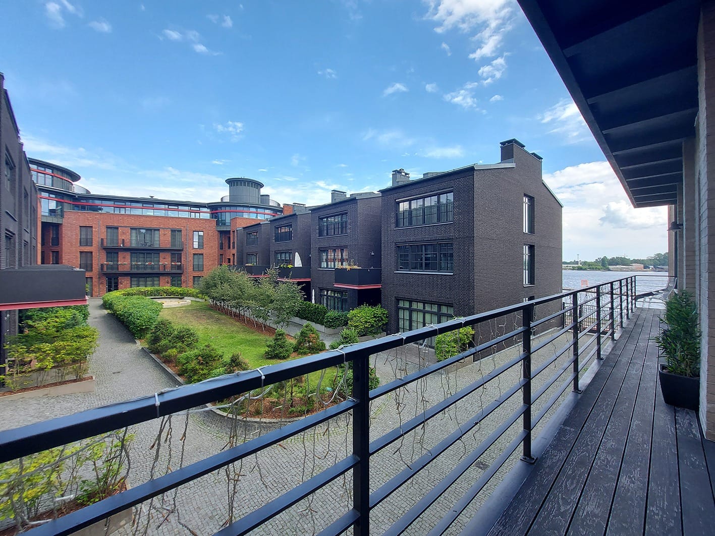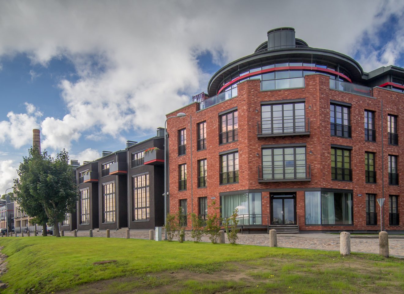 RIVERSIDE RESIDENCE. 4.stāvu ēka Modernisma stilā (arhitekts Mārtiņš Nukša). Katrā stāvā ir izvietot...