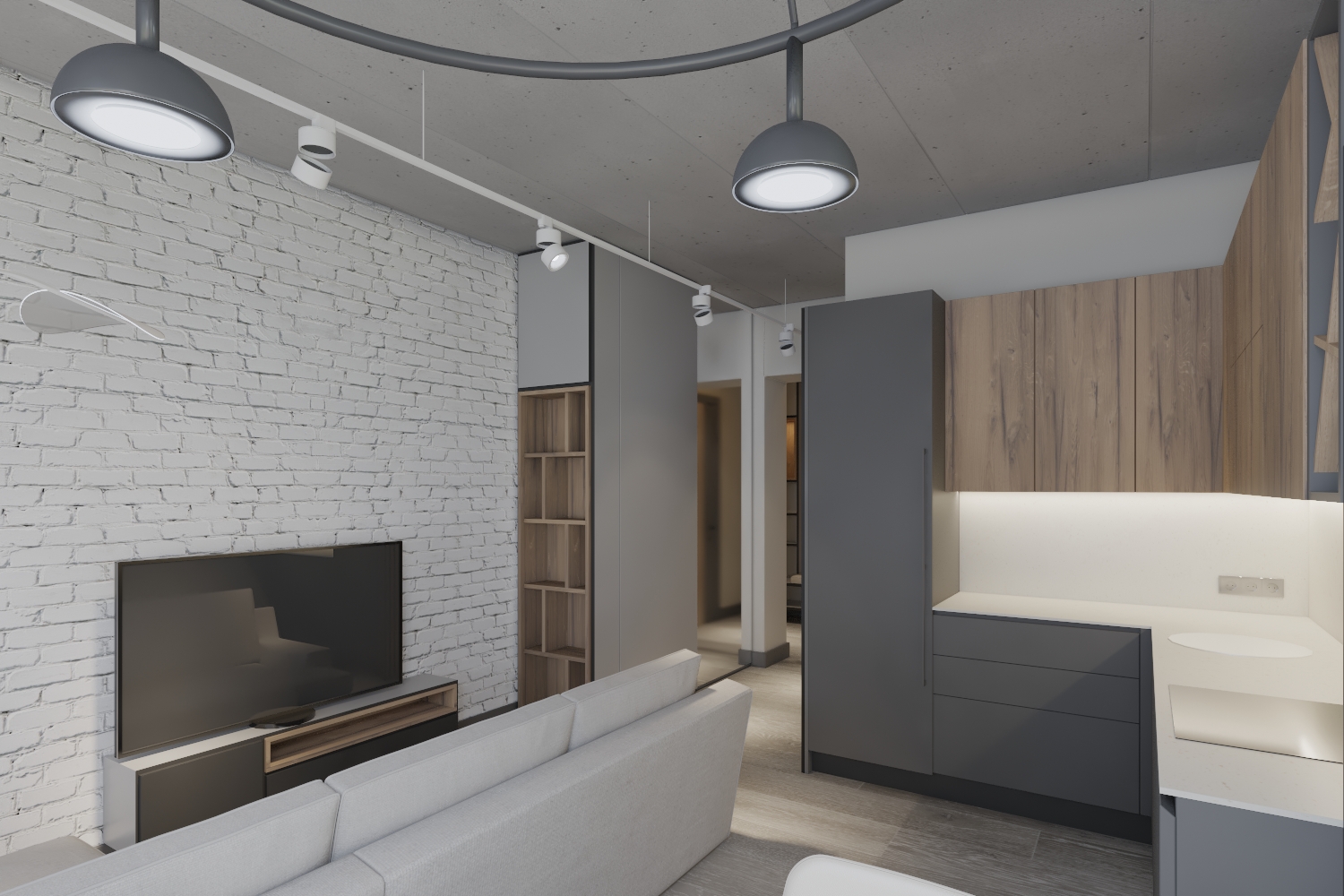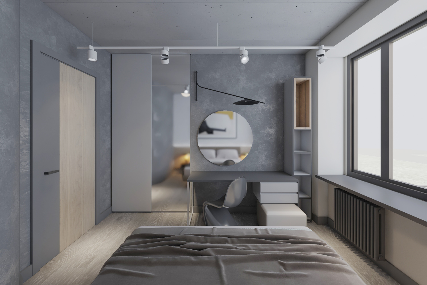Pārdošanā mūsdienīgs studiju tipa dzīvoklis ar pelēko apdari premium projektā StokholmasHaus2...