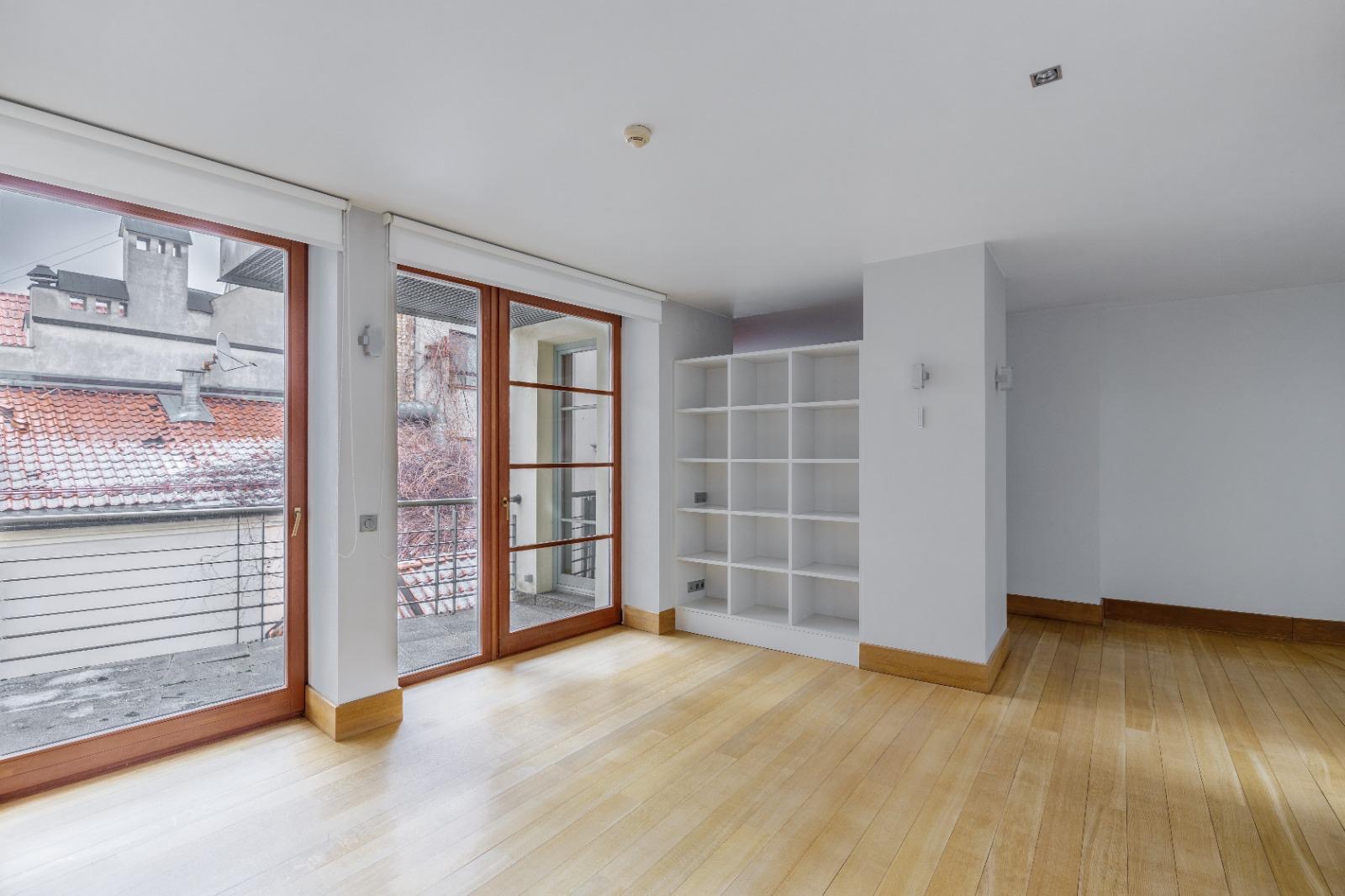 Unikāls divlīmeņu dzīvoklis vēsturiskā ēkā ar skatu uz Doma baznīcu un Daugavas krastmalu.