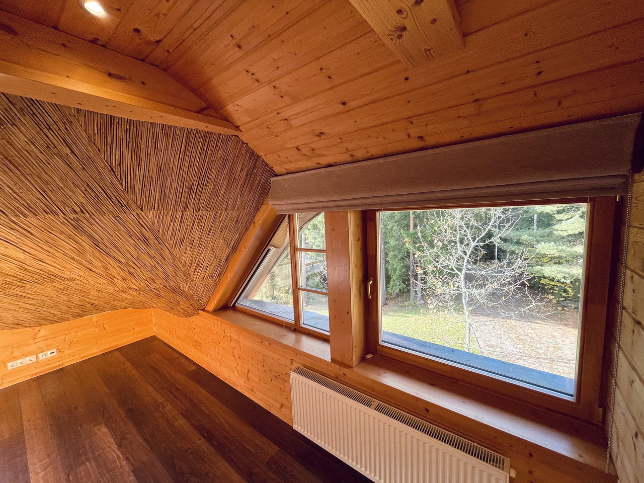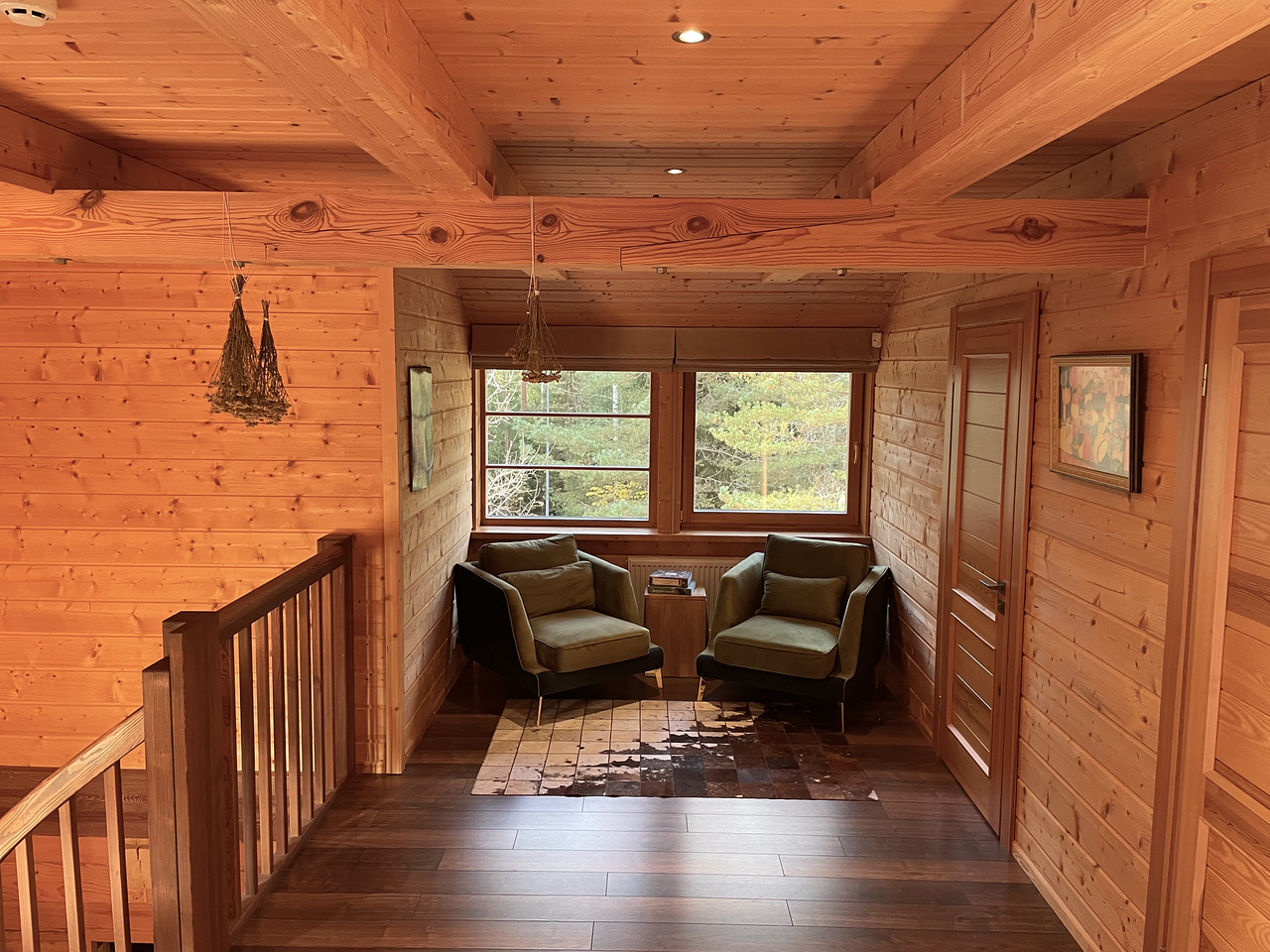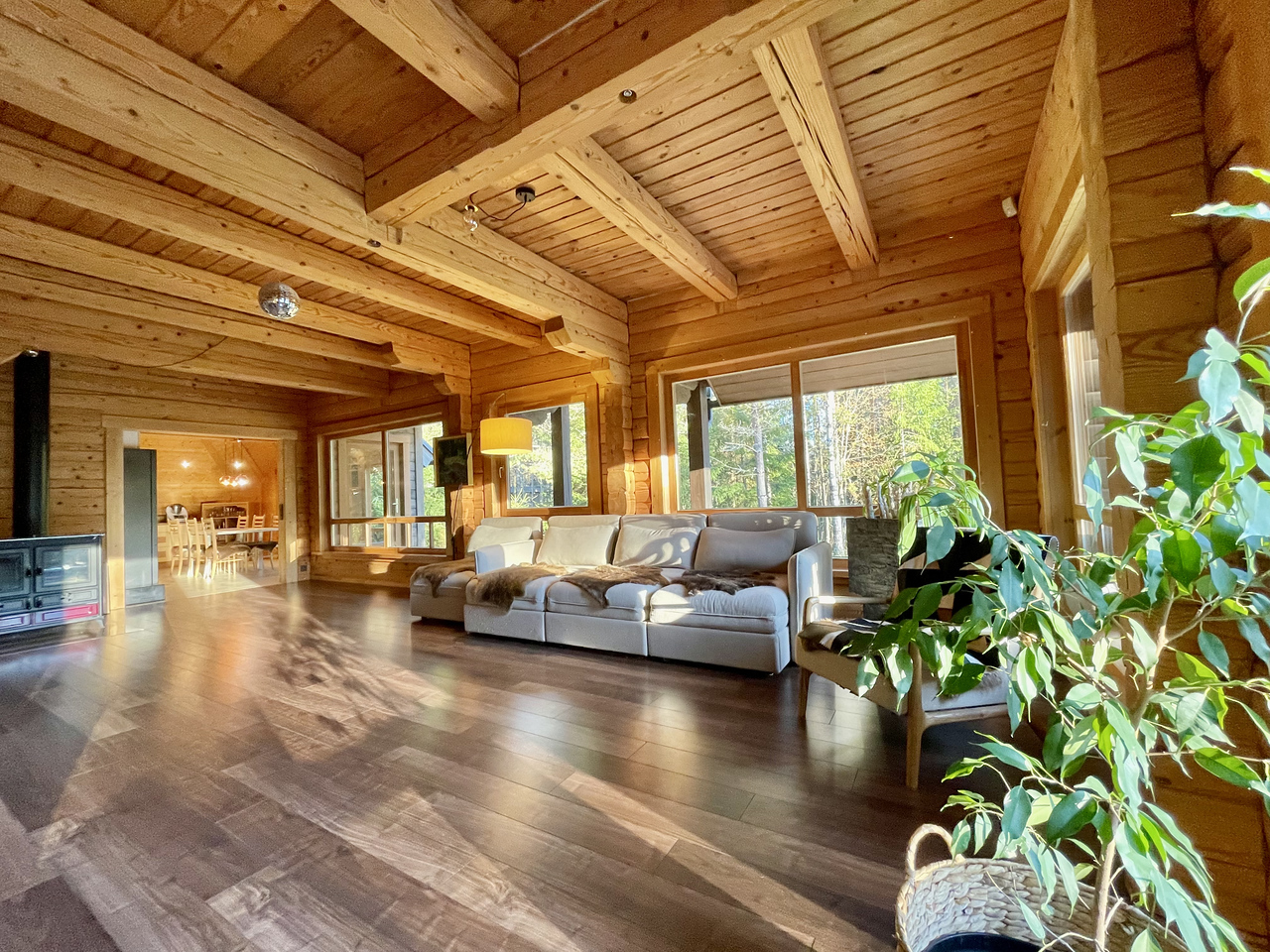 Divstāvu guļbaļķu māja ar 2025. gadā nomainītu koka lubiņu jumtu. Īpašums ir meža ieskauts ar tiešu piekļuvi dīķim un privātu salu, radot unikālu un noslēgtu pagalmu.