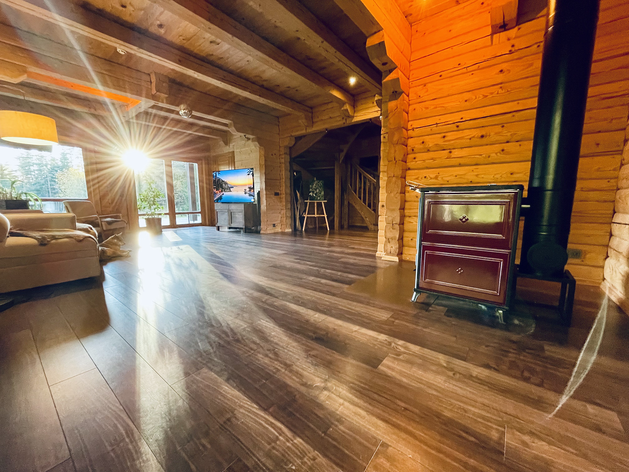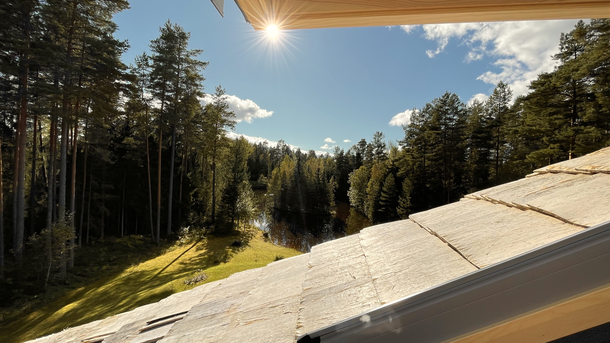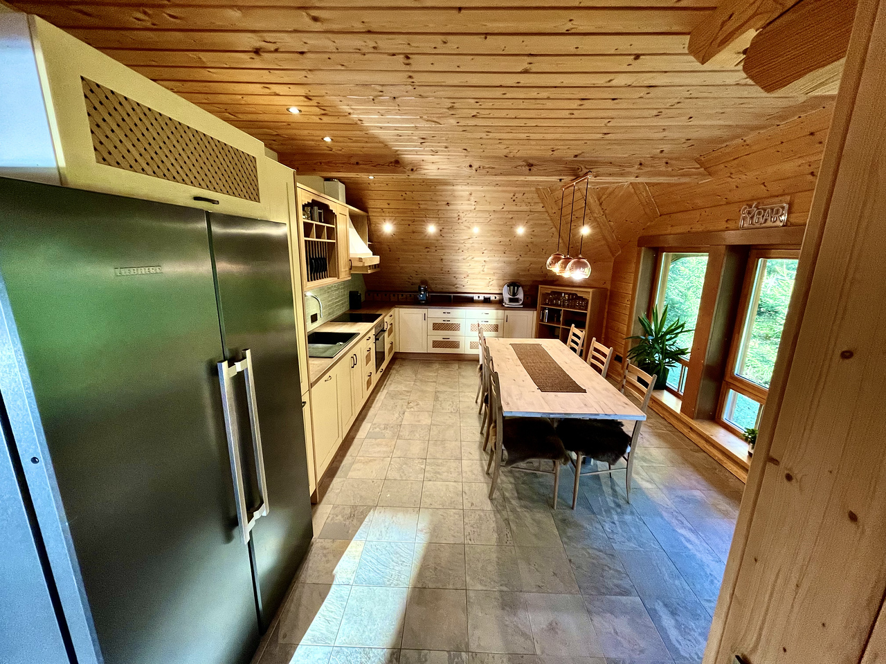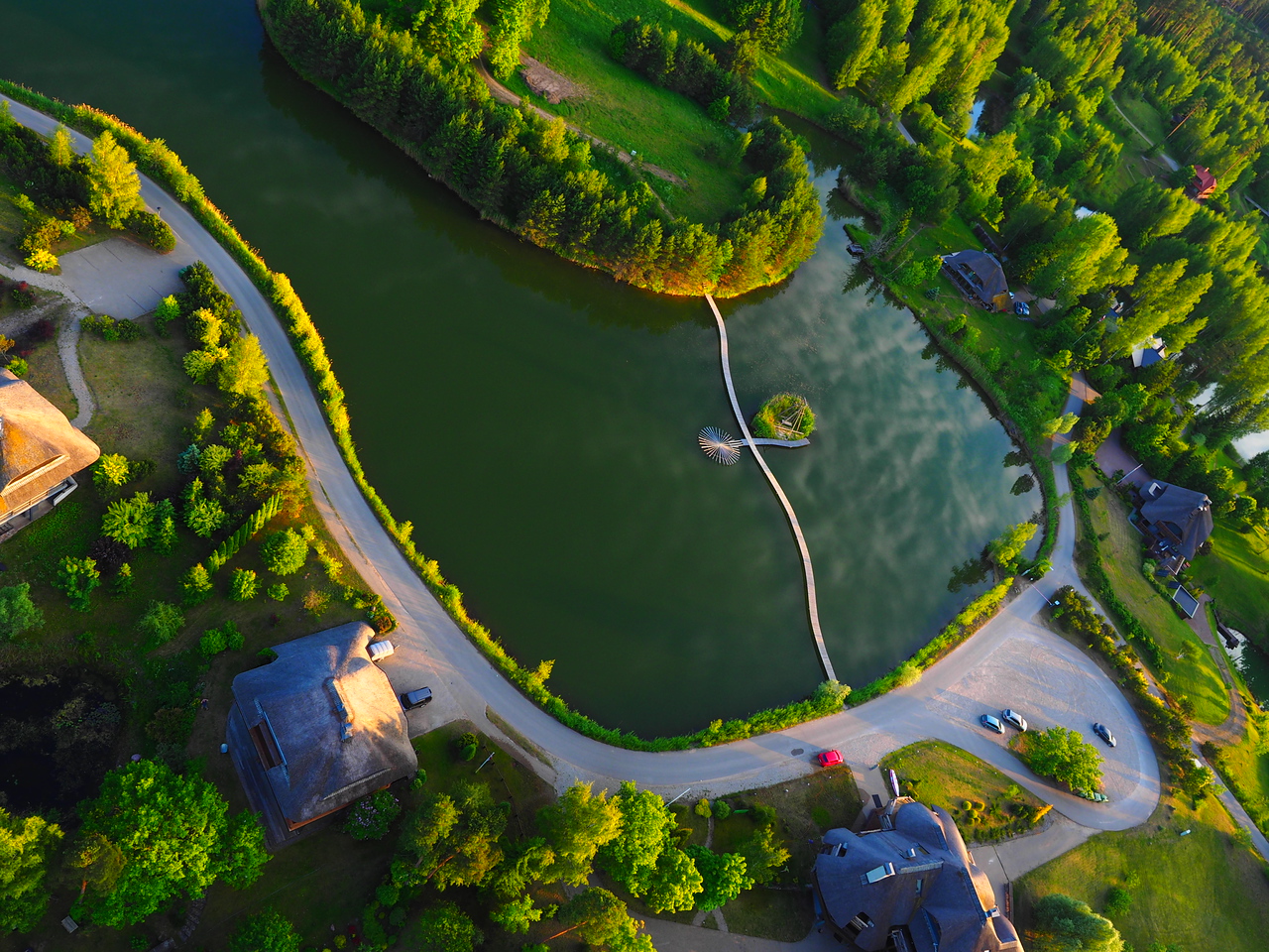 Divstāvu guļbaļķu māja ar 2025. gadā nomainītu koka lubiņu jumtu. Īpašums ir meža ieskauts ar tiešu piekļuvi dīķim un privātu salu, radot unikālu un noslēgtu pagalmu.
