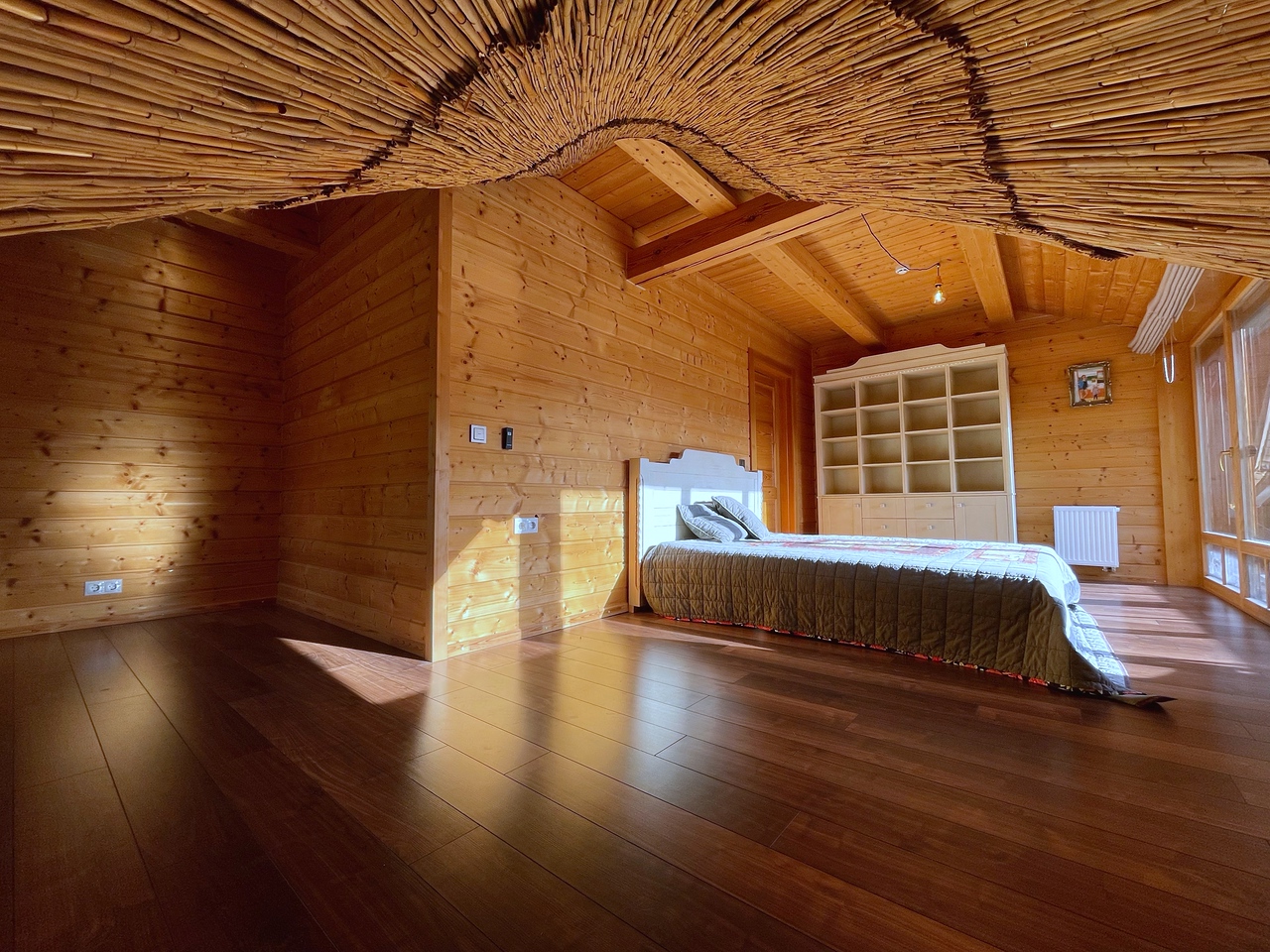 Mājas plānojums ir pārdomāts un piemērots gan ģimenes dzīvei, gan mierpilnai atpūtai. Tajā ir 4 guļamistabas, 2 vannas istabas, plaša dzīvojamā istaba, virtuve, kā arī neliels kabinets vai viesu istaba. Dzīvojamā istabā atrodas malkas krāsns, kas ne tikai rada mājīgu noskaņu, bet arī ļauj gatavot ēdienu. Ārtelpu dzīvi bagātina 95 m² liela dienvidu terase un divi balkoni ar kopējo platību 47 m², no kā paveras skats uz mežu un dīķi. Īpašumam ir slēgta garāža divām automašīnām.