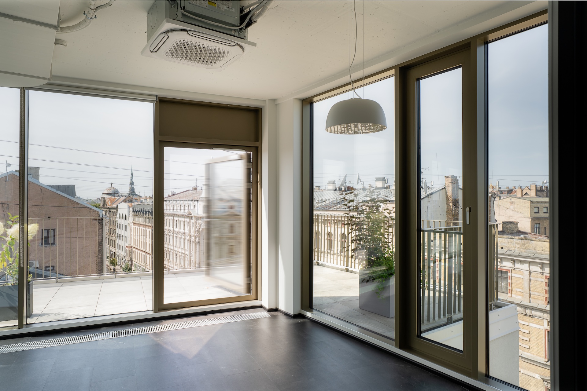 В здании смонтированы современные системы отопления и вентиляции с минимальным потреблением энергии, обеспечивающие в помещениях здоровый и комфортный внутренний микроклимат. Для предприятий выбор таких офисных помещений означает не только снижение уровня потребления энергии и эксплуатационных расходов, но и более здоровую и продуктивную рабочую среду, которую всё выше ценят и ищут сотрудники. Заботясь о комфорте и приятной рабочей среде, в здании оборудованы балконы и террасы.
