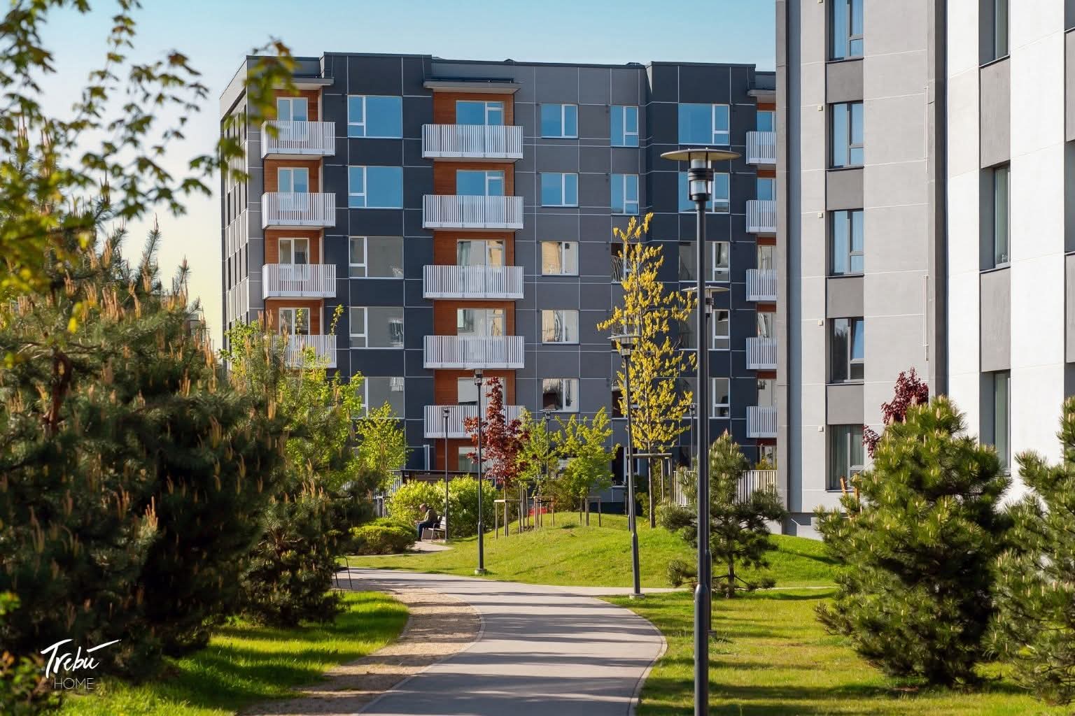 Обширная территория Trebū HOME хорошо освещена и благоустроена - есть прогулочные и беговые дорожки, скамейки для отдыха, детские игровые площадки и зоны для занятий спортом, а также много зелени, деревьев и цветущих растений. С другими планами и ценовыми предложениями можно ознакомиться на сайте проекта.