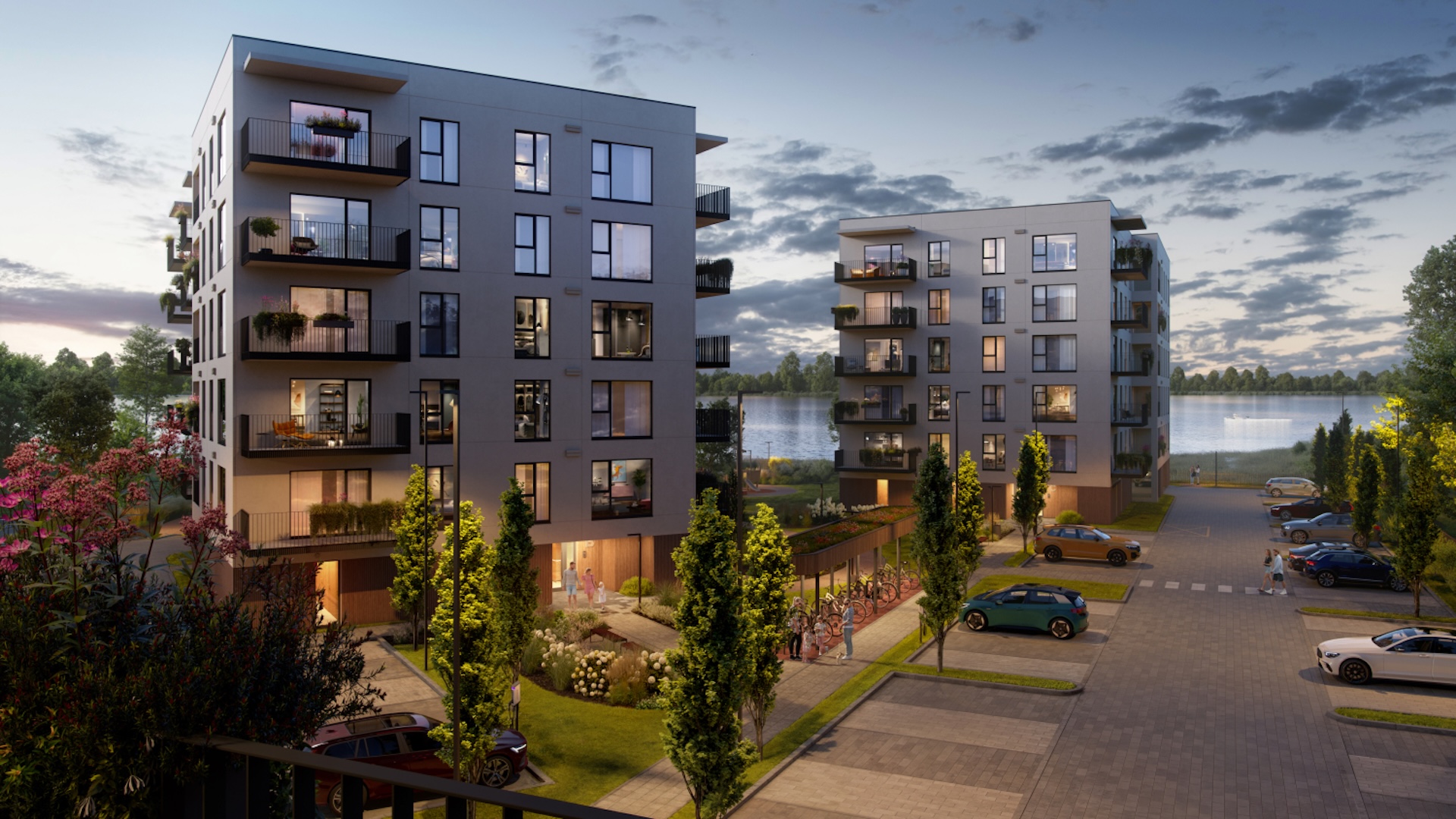 Первая очередь должна быть завершена в конце 2026 года, вторая — летом 2027-го, после чего начнется строительство третьего здания. Жилой комплекс расположится вблизи озера, на благоустроенной и закрытой территории. Для жителей предусмотрен озеленённый двор с зонами отдыха, спорта и детскими площадками.