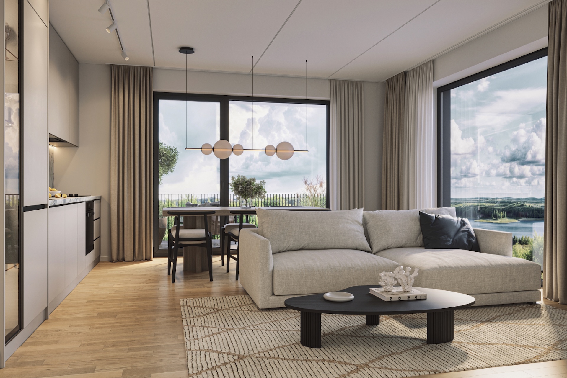 В квартирах предусмотрено напольное отопление с индивидуальной регулировкой температуры по комнатам, система механической вентиляция воздуха с функцией его рекуперации, а также индивидуальные счетчики тепла, воды и электроэнергии.