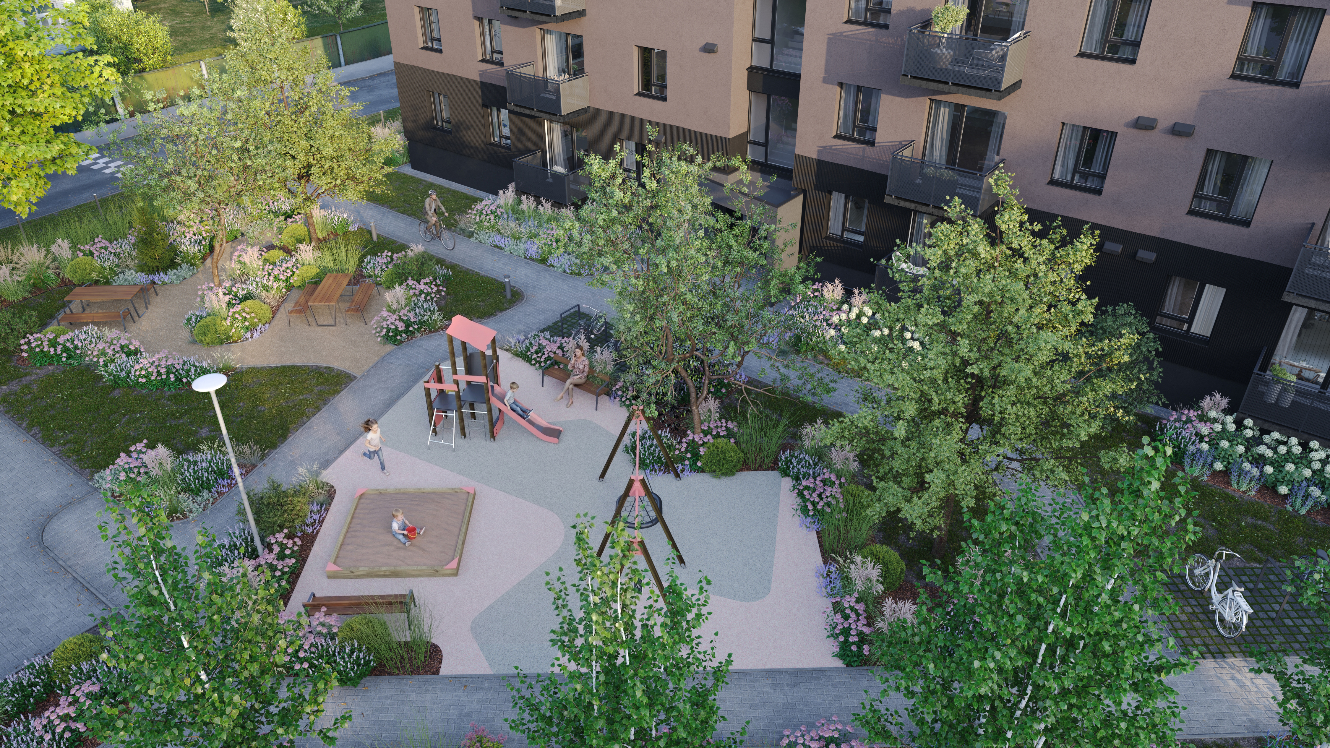 Создавая экологически чистую среду, на территории проекта для удобства жителей построят велопарковки, а часть автостоянок оснастят необходимой инфраструктурой для зарядки электромобилей. Оба здания будут соответствовать классу энергоэффективности A+, а на их крышах  установят солнечные панели, которые помогут снизить расходы на электроэнергию в  местах общего пользования. Для обеспечения качественного свежего воздуха в квартирах смонтируют индивидуальные системы вентиляции с функцией рекуперации.